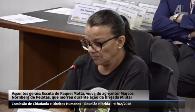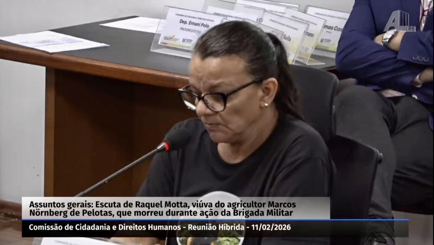 A viúva do produtor rural Roberto Nörnberg, morto durante uma ação da Brigada Militar na madrugada de 15 de janeiro, em Pelotas, foi ouvida na manhã desta quarta-feira (11) pela Comissão de Cidadania e Direitos Humanos (CCDH) da Assembleia Legislativa do Rio Grande do Sul.