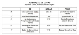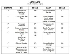Os locais abaixo foram encaminhados para outro local de votação e agrupados, ou seja, mudou o local e a seção do eleitor.