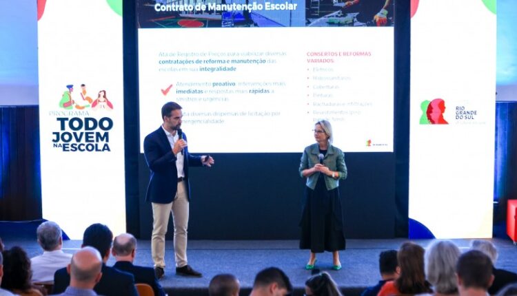 O sistema de manutenção das escolas da rede estadual do Rio Grande do Sul passará por uma grande mudança a partir deste ano. Em ato realizado no Instituto de Educação General Flores da Cunha, nesta quarta-feira (6/3), o governador Eduardo Leite e a secretária de Obras Públicas, Izabel Matte, assinaram as atas de registro de preço regionalizadas. Durante o evento, também foram apresentadas as alterações no programa Todo Jovem na Escola que passarão a valer a partir deste ano. Os dois anúncios feitos nesta quarta-feira abarcam investimentos que chegarão a R$ 1,4 bilhão até 2026.