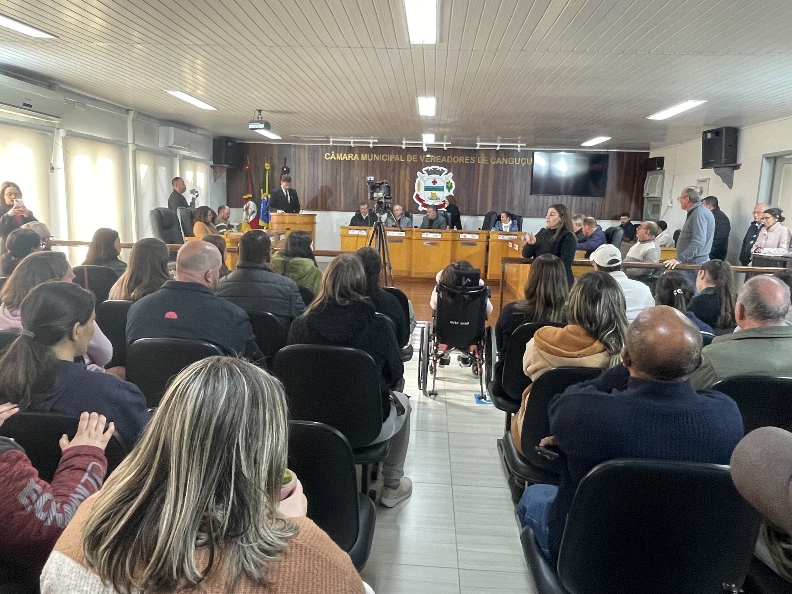 Além dos vereadores que compõem o parlamento, a solenidade contou com a presença do prefeito Arion Braga (PP), secretários municipais, do deputado estadual Zé Nunes (PT) e do deputado federal Alexandre Lindenmeyer (PT), além de representantes de entidades locais como a APAE e a AMPAC, e membros da comunidade em geral.