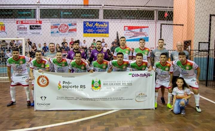 Lucas Oliveira tem 21 anos e disputa a fase de quartas de final da Liga Gaúcha 2 de Futsal com a camisa da Agremiação Guaporense de Esportes (AGE), do município de Guaporé (RS), na Serra. O adversário é a AFUCS, de Seberi, que venceu o primeiro jogo por 5 a 3. O jogo de volta é no domingo (20) e a AGE jogará em casa, com o apoio da torcida.
