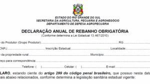 A Declaração Anual de Rebanho é uma obrigação sanitária de todos os produtores rurais gaúchos que trabalhem com agronegócios de produção animal. Porém, com o prazo correndo desde 1º de junho, foram feitas menos de 10% das 380 mil declarações esperadas pela Secretaria da Agricultura, Pecuária e Desenvolvimento Rural (Seapdr).