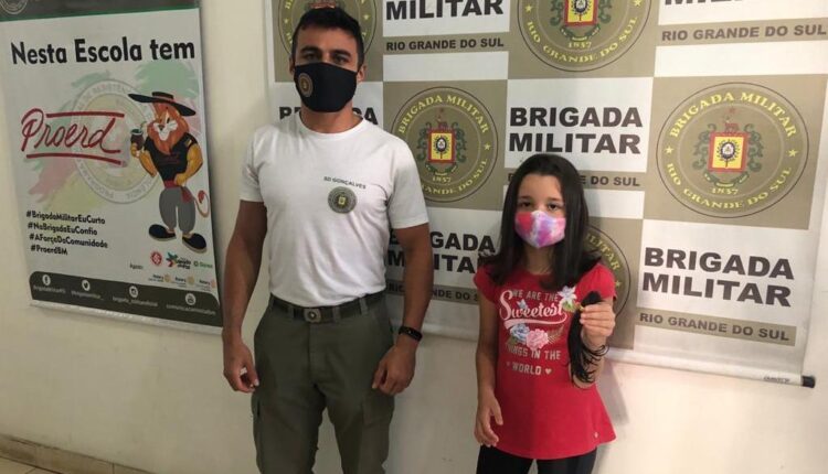 Nesta quarta-feira (24), na Cidade de Canguçu, Júlia Coelho Duarte fez a doação de uma mecha de cabelo à Campanha Cabelos de Aço, da Brigada Militar.