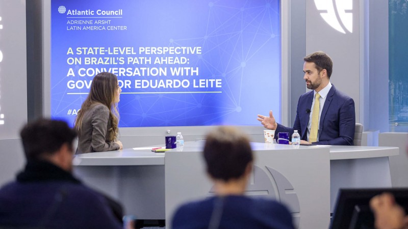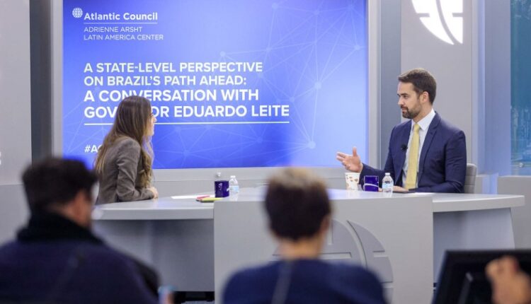 Intitulada “A state-level perspective on Brazil’s path ahead: a conversation with governor Eduardo Leite” (Uma perspectiva em nível estadual sobre os rumos do Brasil: uma conversa com o governador Eduardo Leite), a conversa foi mediada pela diretora associada no Adrianne Arsht Latin America Center, Valentina Sader, e girou em torno de diversos assuntos.
