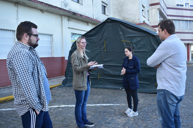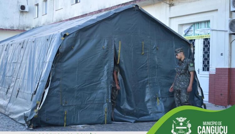 Nesta sexta-feira (3), o 9º Batalhão de Infantaria Motorizado atendeu ao pedido da Prefeitura de Canguçu e realizou a montagem da barraca de campanha em frente ao Hospital de Caridade de Canguçu (HCC).