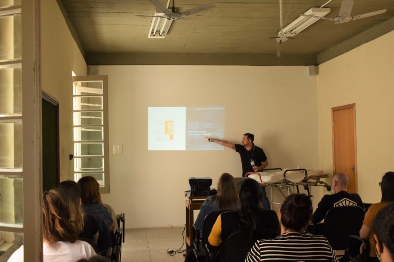 O curso está sendo ministrado por Alan Cristian Rodrigues Jorge, que é mestre na área de Enfermagem em Saúde Mental (HCPA). Nesta manhã, participaram os profissionais na área de saúde dos municípios de Santana da Boa Vista, Piratini e Pedro Osório. À tarde e à noite seguem duas novas turmas com profissionais do HCC, do CAPS, CAPS 1, SASME e Lar de Idosos.