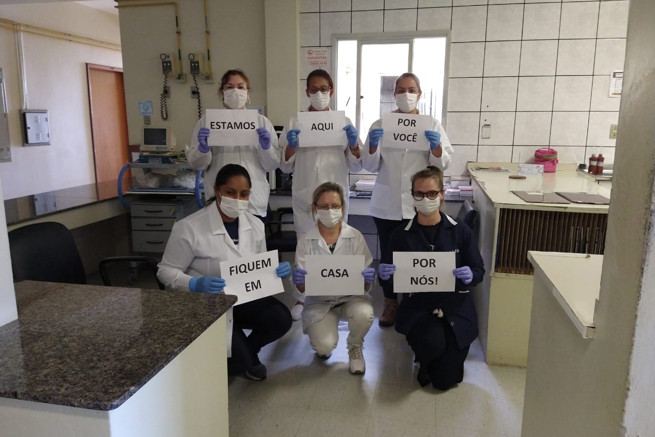 Os profissionais que estão trabalhando diariamente e prontos para a realização de qualquer atendimento a população, pedem encarecidamente que a população que poder, que fique em casa para evitar a proliferação do vírus na cidade.