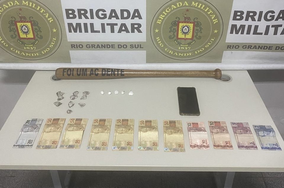 Com o suspeito, foram encontradas dez porções de maconha, cinco porções de cocaína, dinheiro e um telefone celular. O material apreendido, juntamente com o indivíduo, foi encaminhado à Delegacia de Polícia para os procedimentos legais.