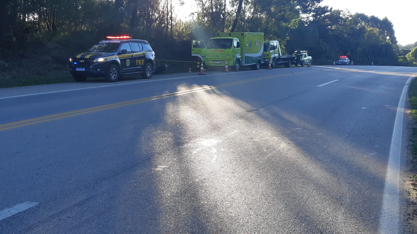 De acordo com os vestígios encontrados pela equipe Polícia Rodoviária Federal (PRF), por motivo a ser esclarecido, o condutor, saiu de pista em uma curva e colidiu no barranco às margens da rodovia, sendo o óbito constatado pelo resgate da concessionária. Atenderam no local, a Empresa Concessionária de Rodovias do Sul (Ecosul) e PRF.