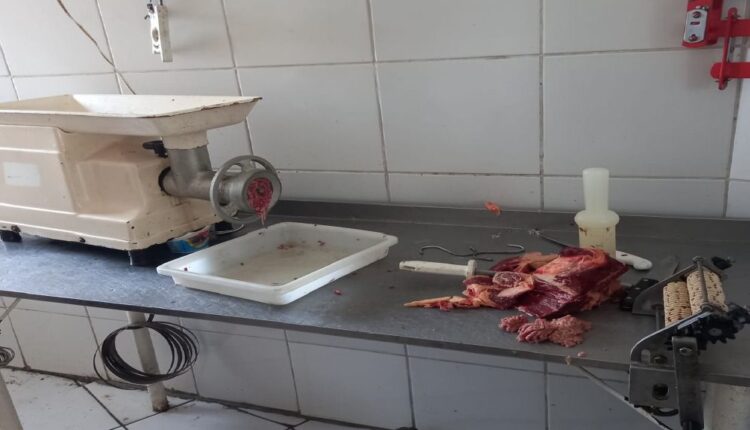 As condições do local de armazenamento das carnes também eram completamente insalubre, com sujeiras nas superfícies e paredes, além de um odor fétido.