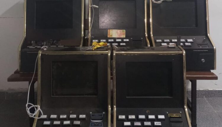 Na ação foram apreendidos 05 ceduleiras, 05 placas das máquinas e R$20 (vinte reais).