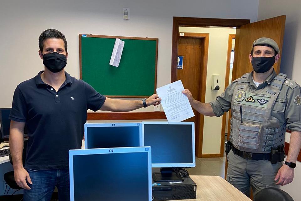 Na tarde desta quinta-feira (12), o Ministério Público efetuou a doação de três computadores à Brigada Militar de Canguçu.
