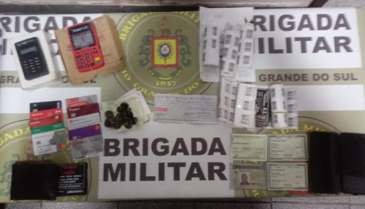 Ainda durante a tarde os policiais conseguiram abordar os dois homens e com eles foram encontrados diversos cartões de bancos, documentos variados, duas máquinas de cartão, um celular, uma carteira, uma folha de cheque preenchido e talonários.