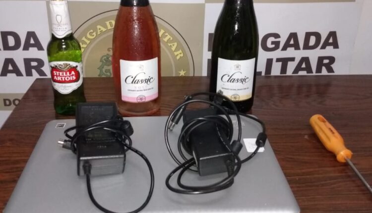 Após os policiais receberem uma denúncia na sala de operações, a guarnição deslocou até o local onde acabou flagrando o homem furtando um notebook e produtos do comércio.
