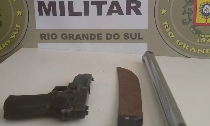 Nessa segunda-feira (18), a Brigada Militar prendeu um homem no momento em que tentava cometer o furto a um estabelecimento comercial. Após uma ligação, a guarnição deslocou até o local onde constatou o fato e encontrou com o autor uma barra de metal, um simulacro e uma faca. Informações: Brigada Militar