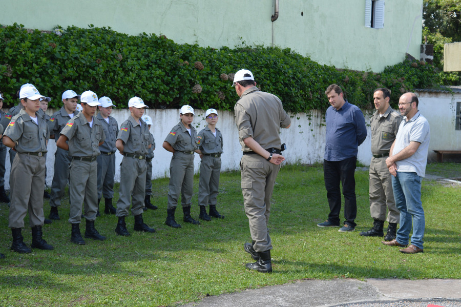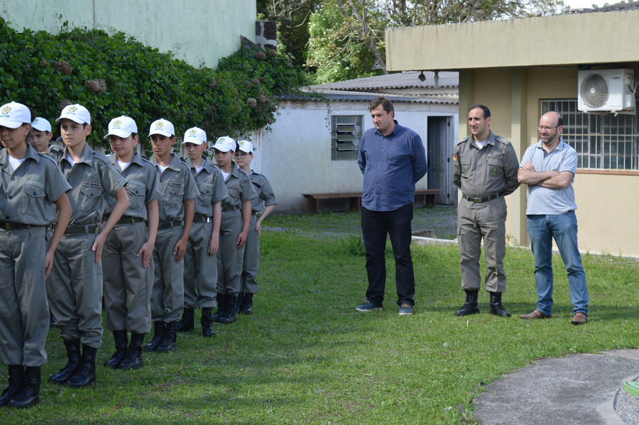 Na oportunidade foram recepcionados pelo Tenente Zanetti e o Soldado Miranda, onde conversaram com as crianças do Projeto Social Brigada Mirim que é desenvolvido na sede da Brigada Militar. Durante a fala reforçaram o apoio e elogios ao trabalho realizado pelo Soldado Miranda com as crianças do município.