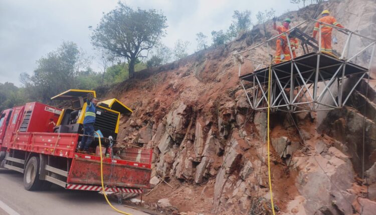 Agentes estão atuando, neste domingo (23), para garantir a manutenção de uma obras na BR 392, em Canguçu, na curva da morte. A ação acontece devido ao desmoronamento de pedras que despencaram. Neste momento, uma das vias está interrompida, a parte do acostamento, para atuação dos trabalhadores.