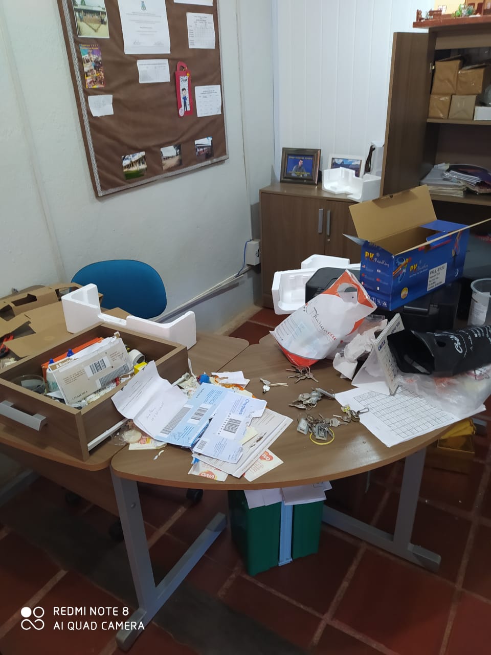 Diego relatou que a escola em que é responsável foi alvo de bandidos que furtaram do local diversos objetos de valor como: 2 aparelhos de ar condicionado, 2 televisores, notebooks, impressoras e muitos outros pertences, deixando um enorme prejuízo para o centro educacional. O responsável lamentou muito o fato e pede para que qualquer pessoa que tenha informações de alguém tentando repassar ou vender os itens mencionados para imediatamente acionar a polícia.