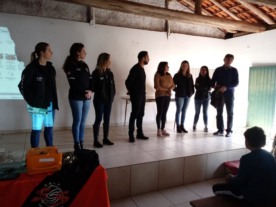 Os assuntos abordados na palestra foram: Drogas; Violência Doméstica e Sexual e Condução de Veículo sem Habilitação e veículos adulterados. As escolas agradecem a Policia Civil e a Secretaria Municipal de Educação,Esporte e Cultura pela parceria com as escolas.