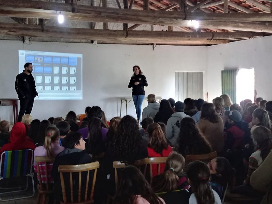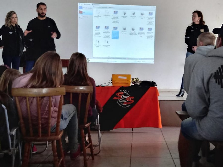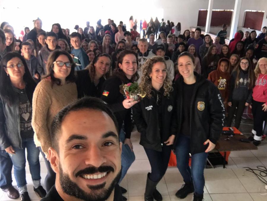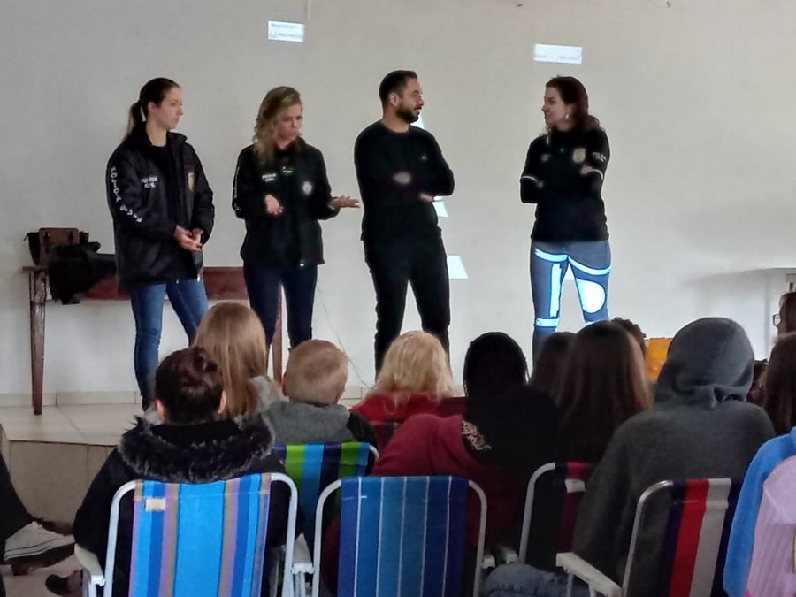 Na manhã desta quarta-feira (29), aconteceu uma Palestra com integrantes da Polícia Civil para alunos, professores, funcionários e equipes diretivas das Escolas Municipais Secundino Silveira da Silva. Escola Francisco José Barbosa, Escola Francisco Meireles, Escola Euclides da Cunha e a Escola José Maria Dutra.