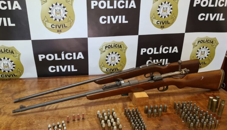 A Polícia Civil, através da Delegacia de Polícia de Canguçu, sob a coordenação do delegado César Nogueira, em cumprimento de mandado de busca e apreensão, prendeu um homem pela prática dos crimes de posse de arma de fogo e munições de uso permitido e posse de arma de fogo de uso restrito.