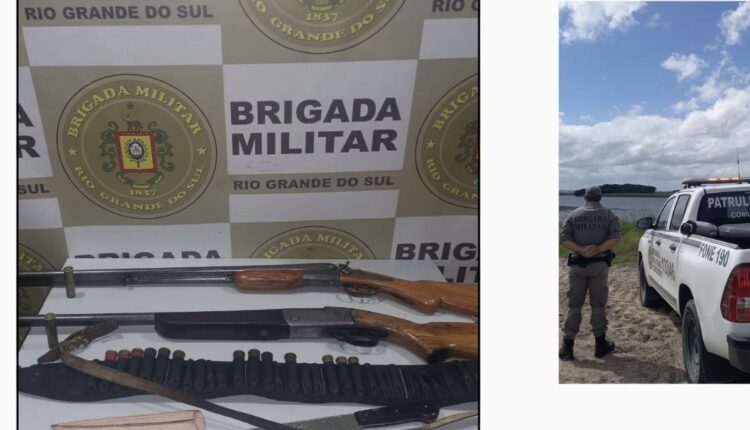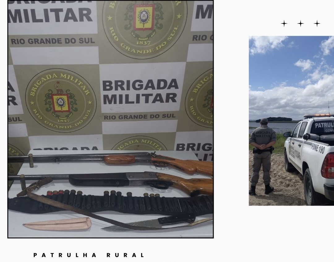O indivíduo foi abordado pelos policiais enquanto atravessava a estrada, retornando de uma área de campo. Com ele, foram localizadas duas espingardas — uma calibre 24, municiada, e outra calibre 16, desmuniciada — além de cartuchos deflagrados e recarregados, um cinturão porta-munições e uma faca com bainha.