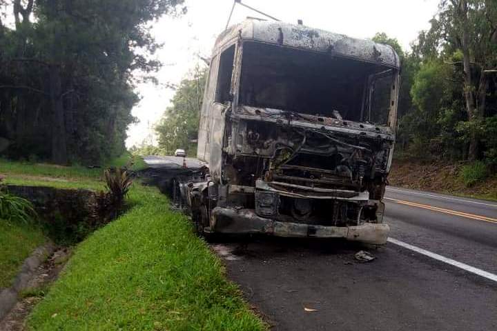 Com o impacto da batida a motocicleta de Luiz Fernando incendiou e o fogo acabou atingindo também o caminhão, que assim como a moto foi completamente consumido pelas chamas. De acordo com informações da Polícia Rodoviária Federal, o motorista do caminhão se deslocava no sentido Morro Redondo – Canguçu e apesar da gravidade da colisão, saiu ileso do local antes que o veículo fosse totalmente destruído pelo fogo.