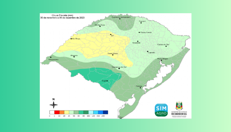 Os próximos sete dias permanecerão com umidade e chuva no Rio Grande do Sul, conforme o Boletim Integrado Agrometeorológico 48/2023, da Secretaria da Agricultura, Pecuária, Produção Sustentável e Irrigação (Seapi), em parceria com a Emater/RS-Ascar e o Irga.