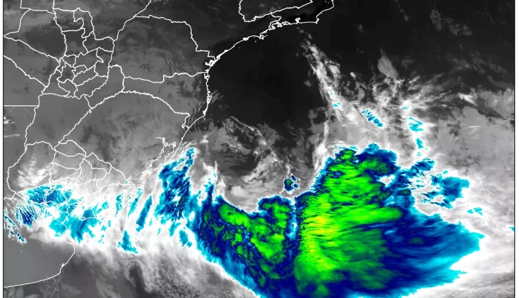 A imagem de satélite mostra que o ciclone está sobre o Oceano Atlântico a Leste do Rio Grande do Sul. O sistema que se formou sobre o estado ontem deixou o continente nas primeiras horas de hoje e passou a atuar sobre o mar junto à costa gaúcha, intensificando-se em ciclone com pressão mínima central ao redor de 990 hPa.