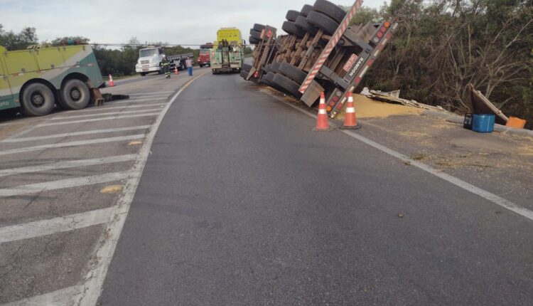 Bloqueio total na BR-392 para retirada de caminhão tombado