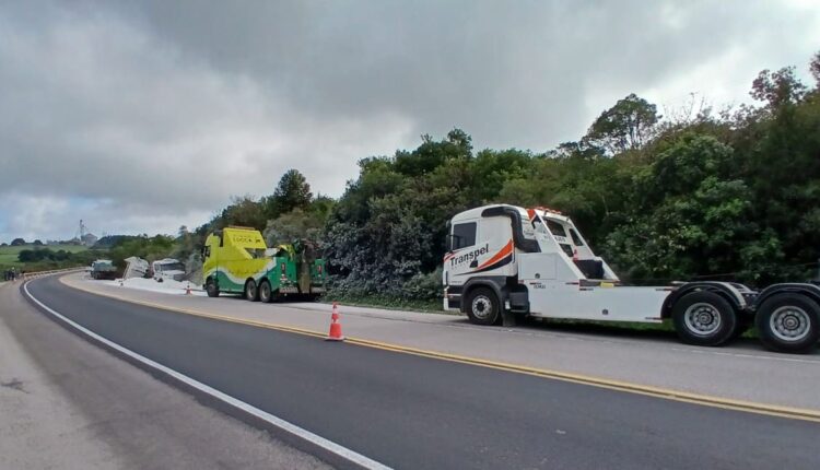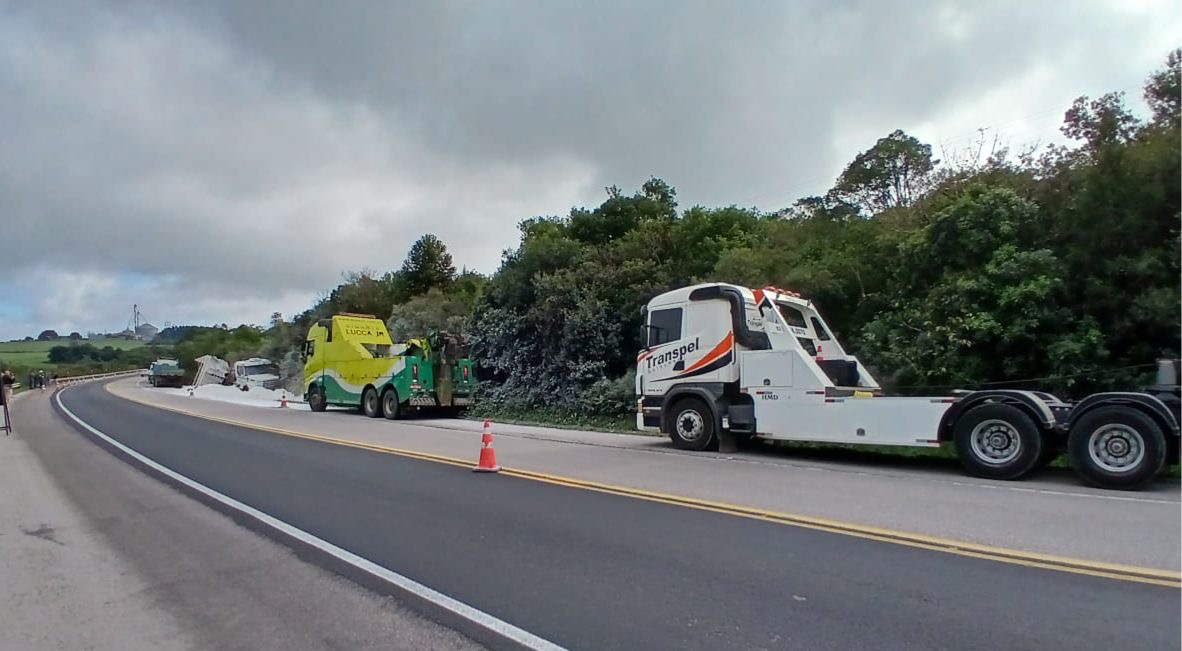 Canguçu: bloqueio total na BR-392 para remoção de carretas acidentadas