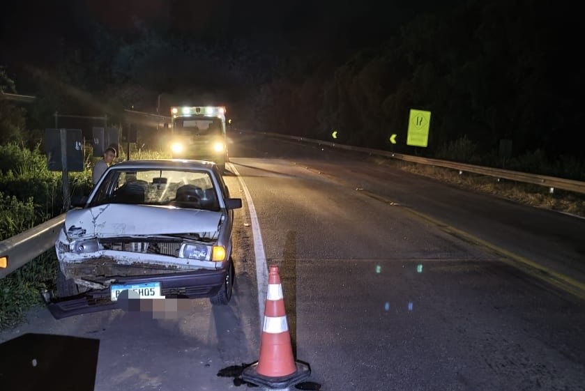 Um veículo de passeio se envolveu em um acidente de trânsito na noite de domingo (25) na BR-392, em Canguçu. A ocorrência foi registrada por volta das 22h42, no km 117 da rodovia, no sentido norte.