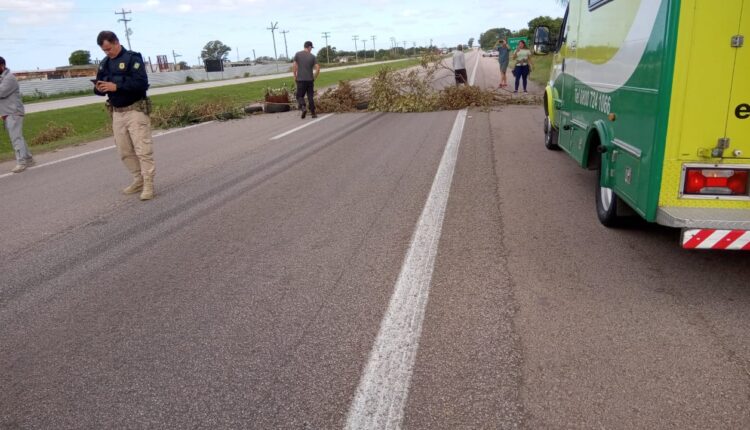 Equipes da Ecosul e da Polícia Rodoviária Federal estão no local para sinalizar o bloqueio da pista.