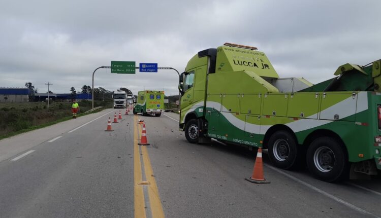 O trânsito flui com restrições no local. Ecosul e PRF estão em atendimento.