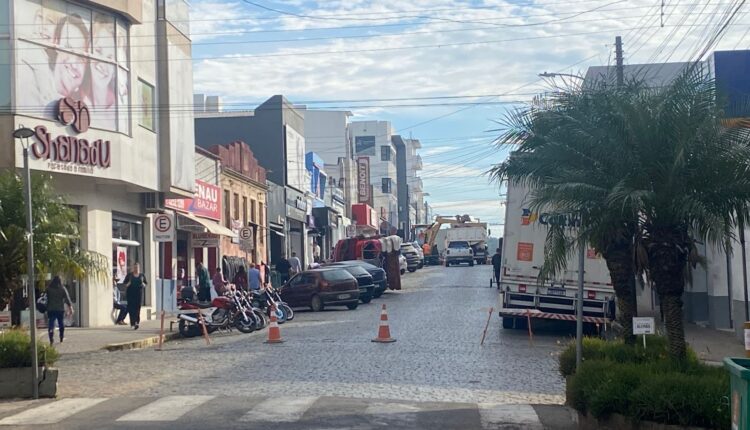 O trânsito foi totalmente interrompido na manhã desta terça-feira (6) em um trecho da Rua General Osório, no centro de Canguçu. A interdição ocorre entre o calçadão e o entroncamento com a Rua Franklin Maximo Moreira devido a uma obra da Companhia Riograndense de Saneamento (Corsan).