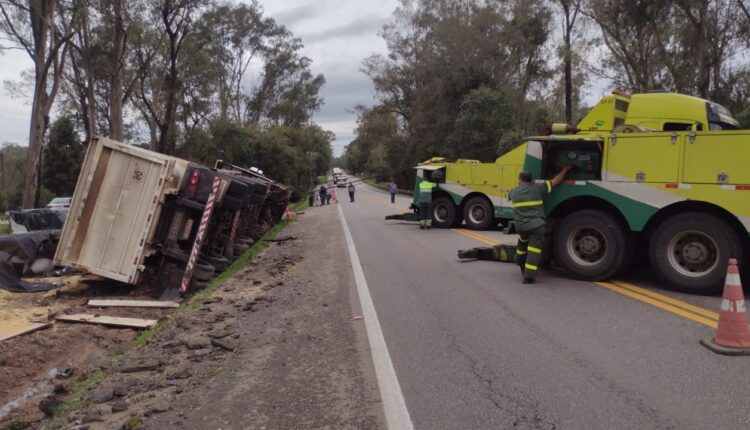 Caminhão tombado causou a interrupção do fluxo na manhã desta quarta-feira (7)