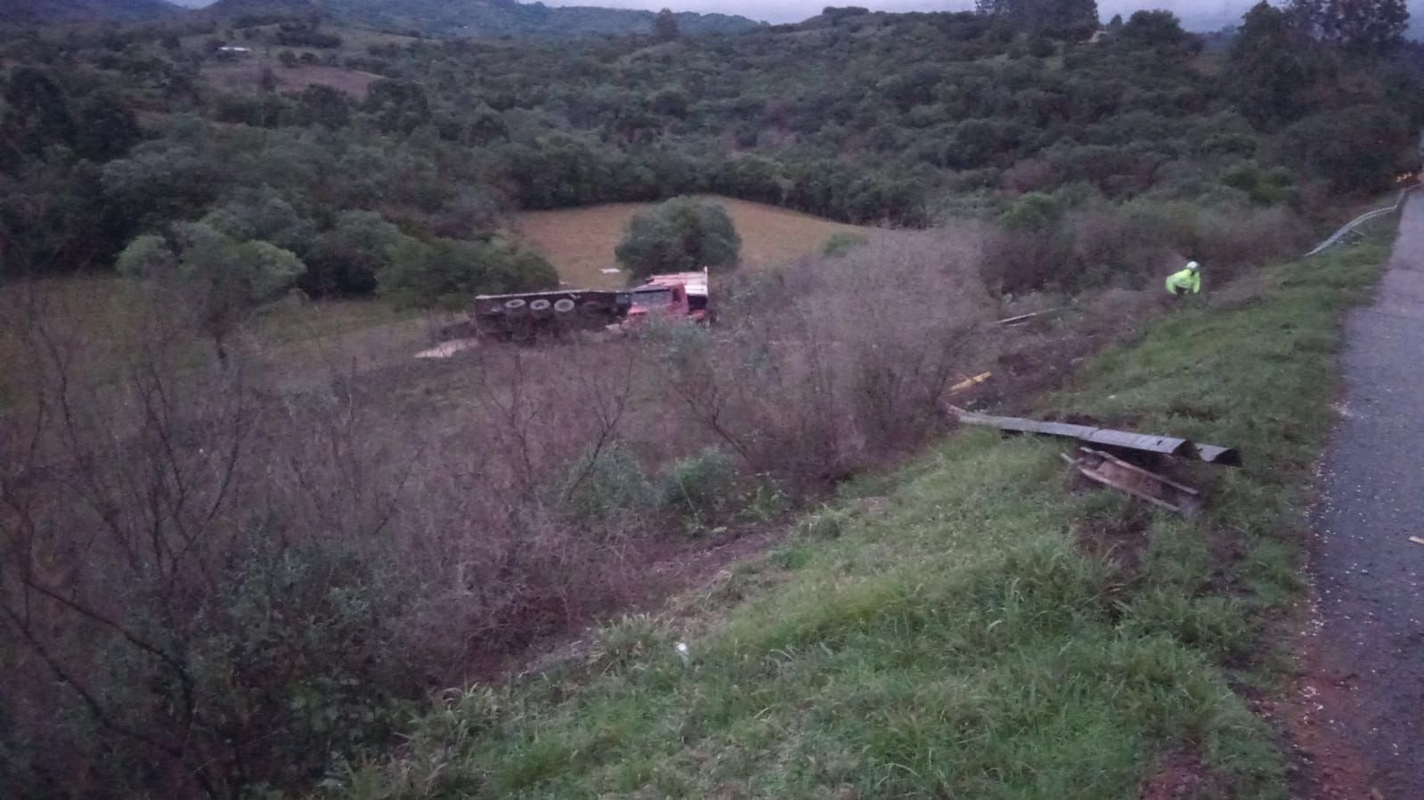 Na manhã desta quinta-feira (17), foi registrada a saída de pista de uma carreta na BR-392, no km 193, no sentido Sul.