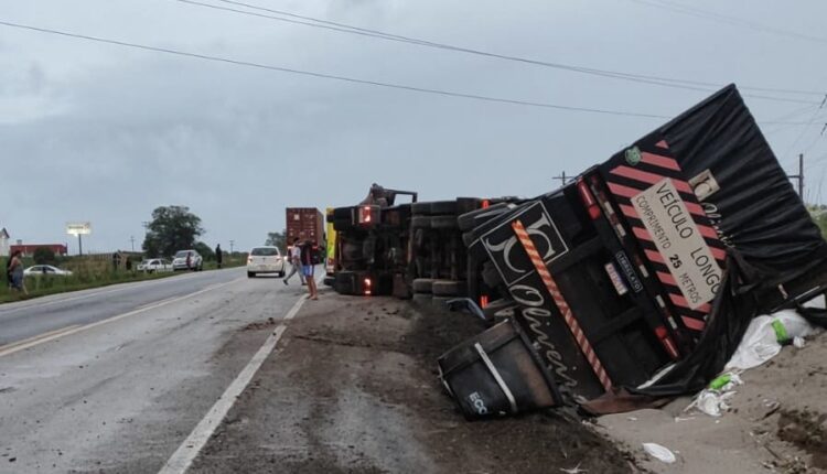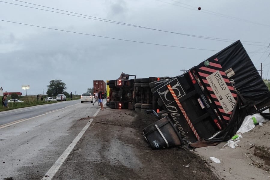 Um tombamento de carreta foi registrado no final da tarde deste domingo (21) no km 122 da BR-392, em Canguçu, no sentido Santana da Boa Vista. A ocorrência foi atendida pela Ecovias Sul, concessionária responsável pelo trecho.