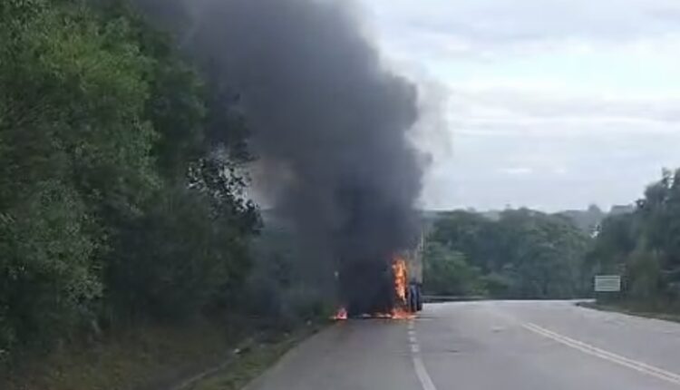 VÍDEO: Caminhão pega fogo na BR-392, em Canguçu