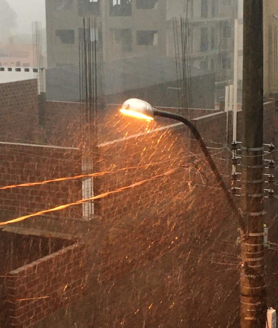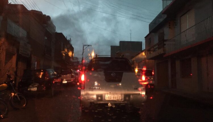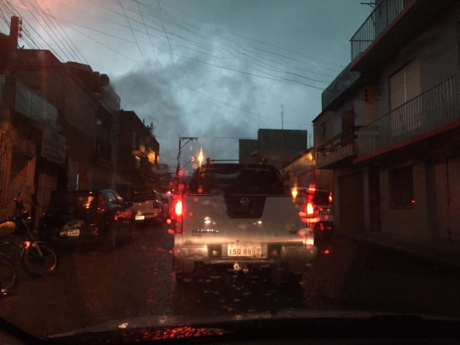 O começo da manhã ficou totalmente escuro com a chegada da chuva que além de grande volume com risco até para granizos.